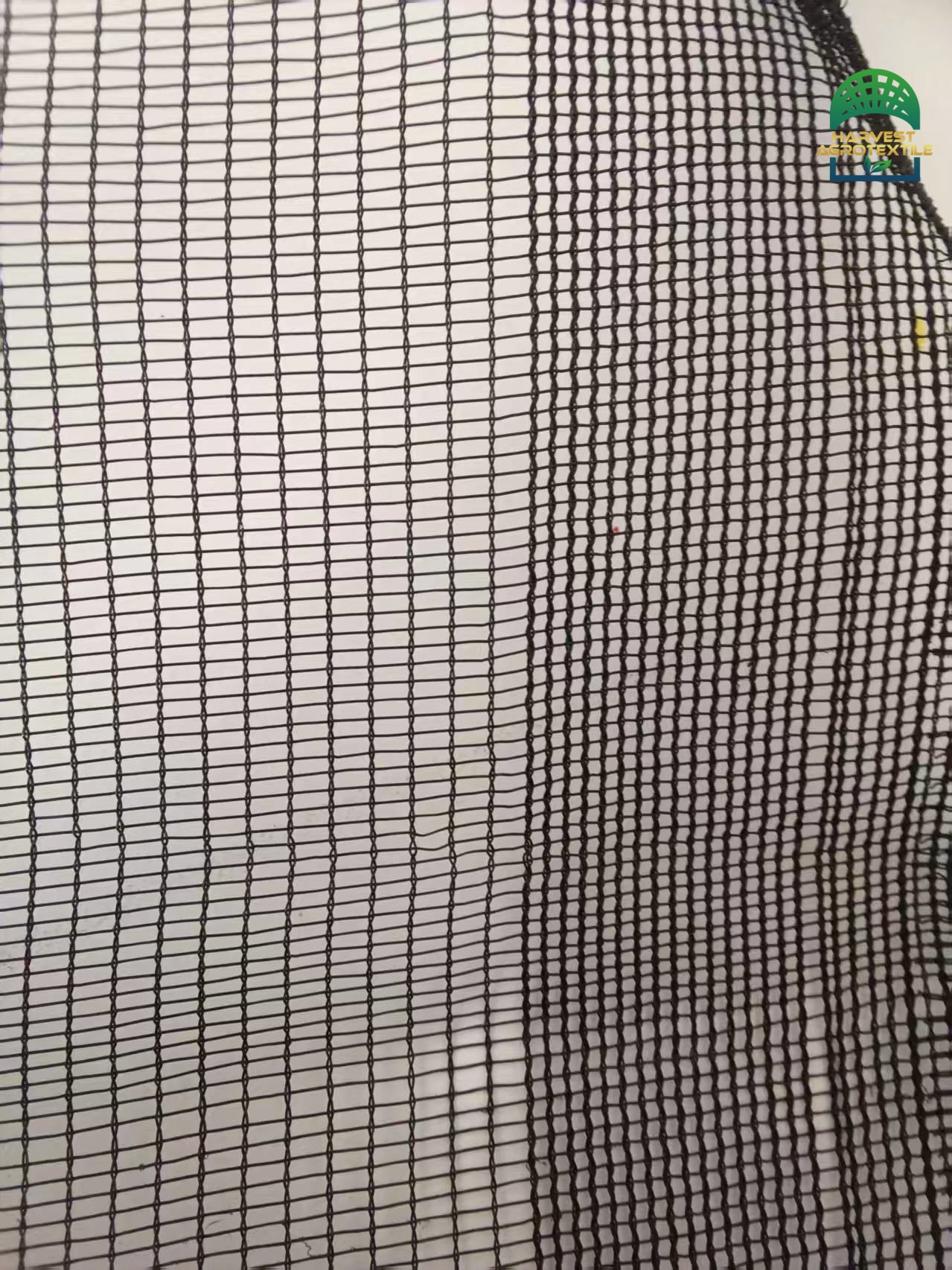 The black plain woven hail net is mainly made of high-density polyethylene (HDPE) monofilament and woven through a plain weave (Plain Woven or Leno/Gauze) process. This weaving method makes the net structure more stable and stronger. -