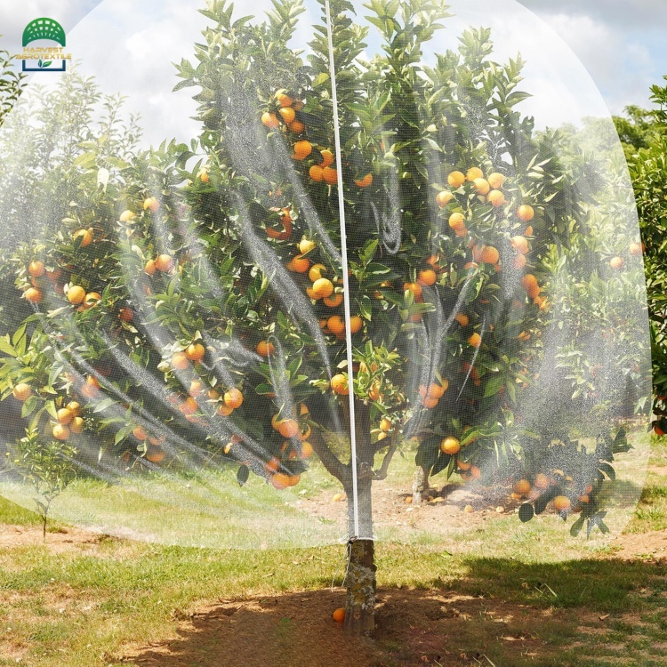 Made of high-density polyethylene (HDPE) or nylon/polyester mesh, it has UV protection and weather resistance properties. It is used to cover fruit trees or orchards to prevent flying insects (such as fruit flies, aphids, and small pests), bees, birds, bats, etc. from entering the canopy of fruit trees, thereby reducing pest infestation, bird pecking, avoiding pollination (when you want to make seedless citrus), or protecting the fruit from external damage.
