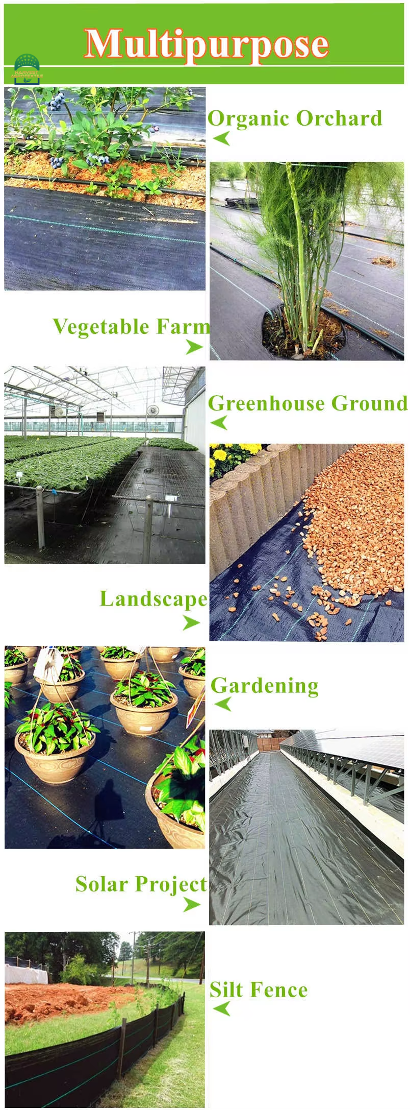 Agricultural PP woven weed barrier fabric is a ground cover material specifically designed for applications in agriculture, orchards, and strawberry and blueberry cultivation. It primarily inhibits weed growth by physically blocking sunlight, while allowing water, air, and nutrients to permeate the soil, thereby improving soil moisture retention, maintaining root health, and reducing weeding labor.